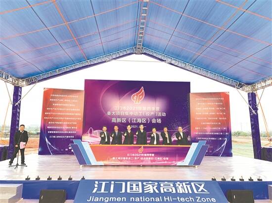 文/图 羊城晚报记者 陈卓栋 通讯员 梁丽斯 谭耀广 12月20日下午,江门高新区(江海区)举行2021年第四季度重点项目集中动工(投产)活动。记者了解到,本次活动共有19个重点项目集中动工建设或投产运营,总投资超63亿元。涵盖产业发展、城建民生等多个领域。 相关领导表示,这些项目的落地建设,将为该区推进产业转型发展,打造全市工业立市重要引擎、高质量发展样板区和创新型经济主导的高水平高新区注入新动能。 深企项目预计年产值超40亿元 记者了解到,本次活动涉及的项目包括5个动工项目、7个投产项目以及7个城建项目,总投资超63亿元。其中,动工建设的芯联电项目属于新一代电子信息产业细分领域的佼佼者,项目总投资30亿元,建设集研发、生产、销售于一体的国内唯一上市总部,致力打造集成电路框架材料国内最大产能生产基地,力争成为全国集成电路材料制造及封测龙头企业。项目预计2024年第一季度投产,整体达产后预计年产值超40亿元。 项目方代表、深圳市芯联电股份有限公司董事长郑建国介绍,该公司是国家高新技术企业,主营生产集成电路材料IC框架系列制造等;产品主要应用于人工智能(AI)、物联网、5G及各类消费电子,半导体照明、半导体显示,光伏、蓝宝石衬底材料切割等。目前主要客户为先进半导体、安世半导体、三星、长盈精密等上市公司及国内外知名企业。近年来,随着公司业务量的进一步增长、企业产业规划的逐步实施,以及公司IPO计划的启动,公司对自有土地与厂房的需求越发紧迫。经过坦诚的沟通和密切的接触,最终在江门高新区(江海区)落户。 今年共推动285亿元重大项目落地 出席活动的江门市委常委、统战部部长利为民表示,江门高新区(江海区)作为江门市唯一的国家级高新区,是江门全力建设省大型产业园区的东部片区,交通区位优势突出,工业基础扎实完善,是产业优质资源的黄金腹地,是广大企业家和创业者施展才华的扎根之地。而芯联电项目更是该区全面接轨深圳,探索“总部+基地”“研发+生产”深度分工合作示范区的重要体现。 江海区区长郑丹辉介绍,今年以来,江门高新区(江海区)瞄准六大战略性产业集群,进一步强化定向招商、以商引商,引进一批又一批科技含量高、行业地位优势明显、亩产效益高的优质项目落地建设,力争打造首个千亿产值园区;持续推动“数字政府”“放管服”“评定分离”等改革向纵深发展,为重点项目、落地企业提供全方位全流程的“贴身服务”,共推动了四批82项超285亿元重大项目的落地。同时,江门高新区(江海区)深入实施江门市委“园区再造”“工业振兴”工程,全面落实区委“园区增效”“工业兴区”行动计划,主动谋划布局一批重大产业项目,推动构建“总部+基地”“研发+制造”产业协同发展体系,推动高新区产业扩容提质。