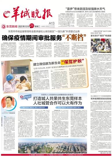羊城晚报讯 记者余宝珠报道:根据东莞市疫情防控要求,东莞松山湖市民中心、大朗政务服务大厅等已暂停对外开放。周边企业需要办事怎么办?12月20日,东莞市市场监督管理局发布了一份《关于全面做好疫情期间