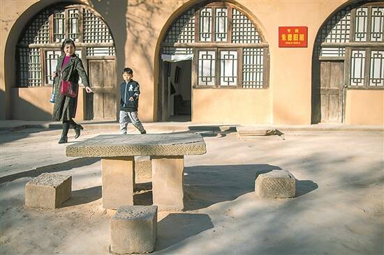 延安枣园革命旧址朱德旧居前的石桌,朱德常和战士们在此下象棋、打扑克 |