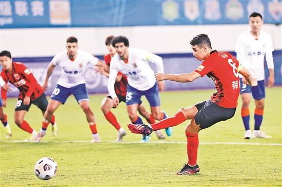 12月19日,上海海港队球员奥斯卡(右二)在射门 新华社发 |