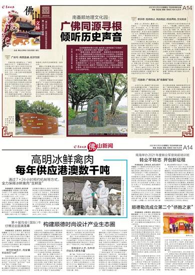 2021年12月24日/星期五/ 湾区新闻部主编 责编 贺全胜/ 美编 黄绮文/ 校对 杜文杰 佛山文脉(第一百五十四期) 出品 佛山记者站 策划/统筹 谢红