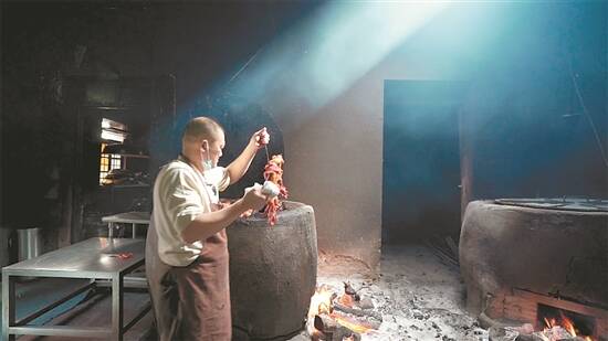 叉烧是体系丰富多元的广东美食“本味”,它不仅历史悠久、流传甚广,而且是百家百味。在珠海斗门大赤坎,一家有着百年历史的本土品牌,传承了四代的独门技艺,2015年被列入市级非物质文化遗产名录,它就是斗门大赤坎明火叉烧烧排骨。 独门技艺 入味飘香 一种美食能够入选非物质文化遗产名录,必有其过人之处。有食家说过,最美味的叉烧,应该是肥肉和瘦肉适中。大赤坎的叉烧,就是肥瘦适中,肥肉甘脆不腻、瘦肉香软可口。而烧排骨则能做到肉质有嚼劲之余还能保持嫩滑。最重要是秘制酱,香浓的蜜汁外加荔枝木的阵阵清香,令人食过返寻味。 据介绍,大赤坎明火叉烧烧排骨的制作过程包括建造烘炉、选购原料、配各酱料、腌制晾干、果木烧烤、出品上桌等。其中,烘炉有着特殊的建造工艺。大赤坎明火叉烧排骨的烘炉是祖传的,采用红砖、水泥砂浆砌成,炉身内外用水泥砂浆批荡,是烤制时紧锁肉汁的秘诀。 选用的材料极为严格,据说该餐厅订购当地农家自养而且是当天屠宰的幼骨猪中的枚头肉(猪肩肉)、水肋排(猪肋排中的上乘部分)作为原料。一头100公斤左右的农家自养猪,能用做叉烧的猪肩肉只有10公斤左右,能用做烧排骨的猪肋排也只有8公斤左右。 与众不同的还有独门酱料。除了常规的白砂糖、精盐、生抽、老抽、60度以上的高粱酒之外,还有特选的天然香料和天然甜味料。将切成大小适中的斜纹条状的猪肩肉和块状猪肋排,腌制晾干,依次串起放入燃烧荔枝木的烘炉当中。荔枝木散发出的芬芳香味长时间熏到叉烧和烧排骨上面,并由表及里,以致柴香入肉,送上餐桌,令人齿颊留香。 四代传承 保护发扬 如今,如此繁复的烹调工艺,每天天没亮就在大赤坎村上演着。这家传承百年的老店有一个名字,叫“大赤坎肥仔强烧味餐厅”,“肥仔强”是第三代传承人赵自强的绰号。 据赵自强介绍,大赤坎明火叉烧烧排骨的加工工艺源于祖父赵池大。据传,民国初年,少年赵池大在南洋菲律宾的马尼拉做餐厅学徒,师从来自广东的擅长制作“叉烧”的老乡。几年间学有所成,便自立门户。他在继承传统技艺的同时,又独创了别具一格的酱料配方和加工工艺,确立了自己的品牌,在马尼拉华人中小有名气。后来赵池大归乡成婚,号名“佐修”,在大赤坎开始了自己的烧味生意。 历经近一个世纪,时至今日,赵池大的传统工艺已传承到他的曾孙——第四代传承人赵志文手中。经过多年的学习和锻炼,如今,赵志文也尽得真传,每一个步骤都练出了真本事。 “我们正在筹备斗门非遗特色综合体,预计明年建成。”据了解,年轻的赵志文不仅通过网络宣传这道本土美味,同时还将自家的叉烧烧排骨打造成手信,并融合非遗元素,打造特色非遗旅游体验,将斗门美食发扬光大。 文/图 杨雪薇