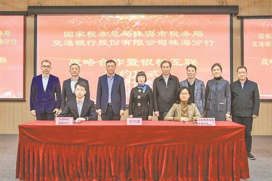 2021年12月29日下午,在国家税务总局广东省税务局一级巡视员欧发明,交通银行广东省分行党委委员、副行长郑婉庆的见证下,交通银行珠海分行与国家税务总局珠海市税务局成功签署战略合作协议和银税互联自助办税业务合作共建协议,珠海市税务局党委委员、副局长吴永红和交通银行珠海分行党委书记、行长韩玉明出席活动并签署协议,全面开启双方战略合作序幕。 现场,双方在交通银行珠海分行营业部政务/智能服务区的“智易通”智能柜员机上体验了税费业务。银税互联项目2.0版本依托跨平台自助办税系统,推动税务服务进驻银行智能柜员机,打造全新模式的银行“微税厅”。 目前交通银行珠海分行全市22个营业网点“智易通”设备均已完成系统接入,为广大市民提供涵盖申报纳税、社保费业务、证明办理和信息查询四大类共计41项自助办税事项,成为了广东省首家上线银税互联2.0版本的银行。银税互联项目2.0版本的落地实施为合作双方带来了“税务+金融”服务质变的转化,大大节省了群众办事的人力物力成本,是践行“我为群众办实事”的具体表现。 本次交通银行珠海分行与国家税务总局珠海市税务局签订战略合作共建协议和银税互联合作协议,是银税双方合作发展的重要里程碑。下一步,银税双方将依托跨平台自助办税系统,深入探索“一厅通办”银税互嵌式延伸服务,持续深化“一件事一次办”便民主题式政务服务,不断提升银税协同发展能力,为市民、企业提供多渠道、多元化、便利化、高效率、有温度的税务及金融一体化自助服务,办好群众实事。 文/图 珠交行