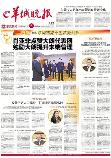 羊城晚报讯 记者余宝珠报道:1月5日,东莞市第十五次党代会现场,党代表肖亚非向大会作报告,全方位呈现了东莞过去五年的成绩单。报告指出,过去五年,东莞在全面从严治党、深化改革开放、创新驱动发展、产