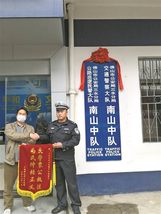 羊城晚报讯 记者梁正杰、通讯员熊彬言摄影报道:近日,三水辖区内发生一起交通事故,一名路经的好心司机出于关怀下车查看伤者伤势时,却被误认为是肇事者。由于现场没有监控视频,好心司机有口难辩,幸得南山中队交警仔细查勘现场,扩大搜寻范围找到了真正的肇事车辆,还其清白。近日,该名司机来到南山中队送上锦旗表达敬意。 1月3日晚,在忙碌完一天工作之后,周先生如往常一样驾车回家。途经三水大塘镇一村庄时,看到一名摩托车司机侧卧在路边,神情痛苦。便停车上前查看情况。他一边询问伤者的身体状况一边想将其搀扶至安全位置,谁料伤者却误以为是周先生撞了他,一番争执无果,周先生只好拨打110报警求助。 接到报警后,交警大队南山中队迅速到场处置。“周先生驾驶的车辆没有安装行车记录仪,事发路段附近也没有安装公共监控视频,我们只能根据车辆碰撞痕迹和事主记忆中的零星线索逐一进行排查。” 随后,交警仔细查勘了现场,并将调查范围扩大到事故地点周边一公里范围内。经过通宵达旦的努力,终于在12个小时搜寻后,找到了真正的肇事车辆,妥善解决了伤者的诊治问题,同时也还了好心车主一个清白。 据肇事者称,由于是侧面刮蹭,所以当时他并未察觉到有撞到人,所以并未停车查看,并非故意逃逸。后经交警调解处理,肇事者支付了医疗费用,伤者向周先生赔礼道歉,事情得到圆满解决。 后来据伤者回忆,当时他被肇事车辆从侧面刮蹭,且俯身摔倒在地后疼痛不已,没有看清肇事车辆以及肇事司机的真正面容,此时事主周先生正好下车过来询问,就误认为其是肇事司机。经诊治,该名伤者已无大碍。 1月10日,中国人民警察节当天,周先生怀着无比感激的心情,来到交警大队南山中队,将印有“交警秉公执法,为民伸张正义”的锦旗送至奋战一线的执勤交警手中,并表达了深深的敬意。