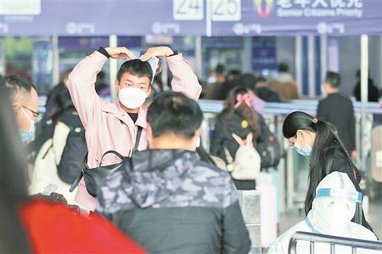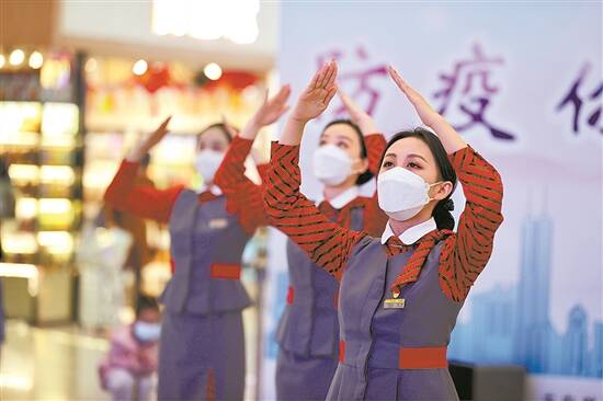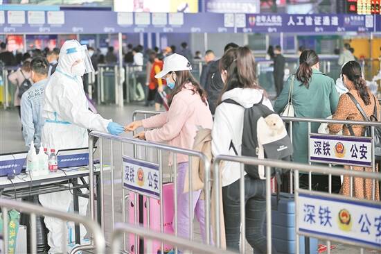文/羊城晚报记者 李天军 通讯员 唐凯 胡福祥 图/羊城晚报记者 王磊 新春日近,春运渐忙。“这防疫舞,赞。”“妈妈,我也要跳防疫舞!”1月17日上午,一段由深圳北站迎春花服务队员改编的防疫舞蹈——《这“圳”好》在候车室吸引了旅客的驻足观看,周围还有几个旅客也跟着学了起来,为回家的旅途添上一份律动的舒心,留下暖暖的回忆。 医务人员科普旅途防疫知识 1月17日,是2022年春运首日,走进候车室,记者发现,有不少旅客已开始踏上回家的旅途。除了大包小包,更多的是脚步的从容,流露在眼角的坚定。“疫情期间出行我们要注意些什么呢?”几位医务人员正在为过往的旅客讲解旅途过程中从出家门到进家门期间的防疫知识。“口罩多久换一次?”“4个小时更换一次,有污染或汗湿也要及时更换。”得到答案后,一名旅客从包里拿出新口罩换了一个。 原来,为进一步提升旅客乘车出行的安全防护意识,倡导科学防疫、文明出行,结合当前深圳市防疫工作实际,深圳北站联合深圳北站派出所、深圳市龙华区人民医院、深圳市龙华区疾病预防控制中心开展了一场“防疫你我在,一起向未来”的文明健康出行主题宣传活动。 “配合国家做好防控,才能有最大自由” “我们积极配合属地防疫政策是在疫情防控下每个公民应尽的义务,千万不要头脑一热,让情绪战胜了理性,作出违法行为。”紧接着,深圳北站派出所副所长王晓亮现场说法,为旅客普及疫情防控违法违规行为及法律后果。活动中,有不少旅客融入进来,纷纷用手机拍照,有的还跟朋友、家人连线。“防疫是大家的事,关乎每个人的健康,配合国家做好防控,才能有最大的自由。”准备回湖南衡阳老家的旅客李先生边翻阅着刚领的防疫宣传手册边说道。 春节回家,是无数游子心中不变的主旋律。活动最后,一段由深圳北站职工带来的手语舞《国家》让人动容,在旅客的欢呼声中,在山河无恙人间皆安的脚步里,平安回家就是对爱家与爱国的最好诠释。“爱家先爱国,爱国如爱家,在疫情面前,我们更应该像歌舞中传递出的力量一样,团结一致,严格遵守防疫规定,平安到家。”乘坐G1032次列车回武汉的张先生表示,现在我们还能够踏上回家的旅途,是无数人团结奋斗的结果,倍感温暖。 “这次活动的意义在于,通过喜闻乐见的形式,让旅客更多地了解防疫知识,共同维护我们美好的家园,人民与祖国风雨同歌!”深圳北站值班站长蒋婉妮表示。