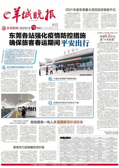 文/图 羊城晚报记者 余宝珠 1月17日,春运首日,东莞各火车站、高铁站正式进入“春运时间”。2022年春运从1月17日开始,2月25日结束,共计40天。测温、示码……东莞各火车站