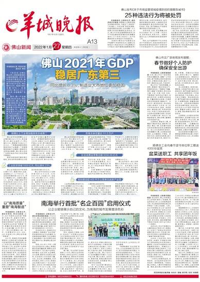 羊城晚报记者 欧阳志强 通讯员 佛宣 1月25日,记者从佛山市人民政府新闻办公室官微获悉,2021年经济运行情况公布,佛山全市完成地区生产总值12156.54亿元,同比
