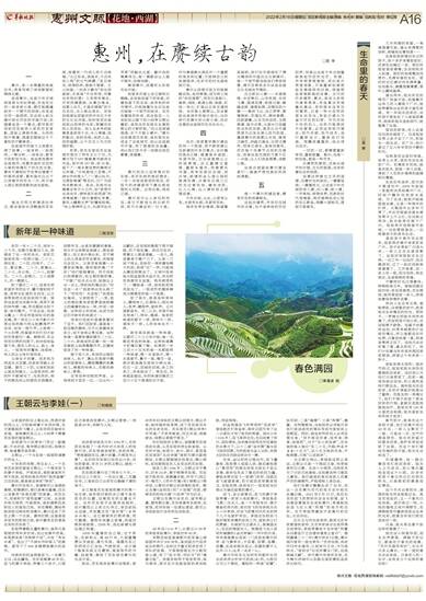 2022年2月18日/星期五/ 湾区新闻部主编/责编 朱光宇/ 美编 伍岩龙/ 校对 李红雨 惠州文脉·花地西湖投稿邮箱:wbfkblsl1@ycwb.com