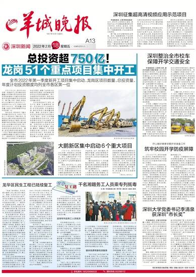 1957年10月1日创刊 深圳新闻 2022年2月18日 星期五 壬寅年正月十八 湾区新闻部主编/责编 李程 / 美编 陈日升 / 校对 杜文杰 报料热线:83