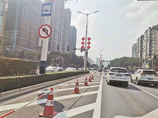 路口车多繁忙怎么办?最有效的办法是增加车道!但最近,珠海交警却对珠海市中心高度繁忙的路口做起了减法,不但没给增加车道,还给减少了一条机动车道,减少车道之后的结果让很多人意想不到。 最繁忙路口减少一条车道 这个路口是九洲大道交桂花路路口。对于这个路口的交通繁忙程度,珠海的司机都非常清楚,它和105国道交南坦路路口、珠海大道交南湾大道路口一样,属于珠海市区内交通繁忙第一梯队。 在这样的路口减少一条机动车道,会造成怎样的后果?路口增加机动车道一直是交警部门的主流交管思路,路口的车道数增加能够明显提高蓄车量。比如一个路口有100辆车等红灯,如果有4条车道,每条车道有25辆车等红灯,如果有5条车道,每条车道就只有20辆了。它所带来的“红利”绝不仅仅是每条机动车道少排队5辆车,而是当下一个绿灯亮起时,排队等红灯的车要依次启动通过,依次启动是一个非常消耗时间的环节。多出的一条车道承载了20辆车,就意味着这20辆车可以和其他80辆车同步启动,由此可以省出大量时间。 这就是为什么珠海很多道路明明是单向三车道或四车道,到了路口就变成了四车或五车道,比如人民东路交柠溪路路口、梅华路沿线各路口等等。在路口增多车道是珠海交警提高通行效率的重要手段。然而到了九洲大道交桂花路路口,怎么又反其道而行之,减少机动车道呢? 原来,九洲大道交桂花路路口早年是一个很中规中矩的路口,后来因为交通流量逐年上升,珠海交警对这个路口不断地进行“手术式”的调整,先是把掉头口位置移动了80米,后来为了保住高峰期九洲大道东西向的直行车流,在该路口实施禁止左转,把原来的左转道也改成了直行道。 这样一来,不但九洲大道东西向直行车流将获得更多的绿灯时间,原先的左转车道也改成直行车道,九洲大道单向四车道到了桂花路路口变成五车道,路口增加车道提高通行效率,可谓一举两得。 然而,后来的实践情况出乎原先的预料。直行的五条车道等到绿灯起步后,开到路口对面又变回四条车道,形成了五对四的格局。这就意味着原先那条从左转改成的直行车道,车要边开边并道。车辆一并道,两条车道的通行效率都下降了,而且很容易发生剐蹭事故。有一天高峰期,因为并道连续发生两起剐蹭事故,很快两条道都堵了。拱北交警于是临时调整策略,用雪糕筒把多出的那条直行道拦了起来。 但改为四条车道后,蓄车量下降,车辆在路口排队长度又增加了,交警清理事故现场后,只好又把雪糕筒拿开了。也许有人会问,为什么同样的问题不会在梅华路和人民东路那些路口出现呢?原因很简单,这些路口的车流量远不能和九洲大道相比。 随着车流量越来越大,高峰期路口的剐蹭事故也是越来越多,经常造成交通拥堵。拱北交警大队一中队中队长邢国凯和网格民警把目光投向了这个路口,他们觉得应该有一个两全其美的办法,既提高路口通行效率,又减少轻微事故的发生率。 经过一段时间的观察,他们向交警支队建议,把多出来的一条机动车道减掉。多出的一条直行道到底该不该保留,围绕这个问题,交警部门组织开展了认真讨论研究。大家认为应该对两种方案进行实地观测比较,看看哪种效果最优。 交警实地测试探索最佳方案 2021年11月,交警部门展开实验测试,先连续统计了一周内五条车道状态下的早晚高峰固定时间的车流量,然后连续一周把路口变成四车道,再统计看哪种方案总体通行效率更高。 实验的结果让所有人吃惊:改为四车道后,九洲大道东西方向的绿灯时间竟然都自动延长了,也就意味着在一个绿灯周期,东西向能有更多的车通过路口。 其中:早高峰东往西方向通行效率有略微提高(因为早上东往西车流量实在太大),但其他三个方向的通行效率有了大幅提高;再看看晚高峰,东往西改四车道后,不但桂花路通行效率提升,西往东方向的通行效率更是提高了12%左右,让人吃惊。 改为四车道后,东西方向通行效率提升的奥秘在于:东西向绿灯时间自动延长了。但测试时,交警并没有调整信号灯配时,这是怎么回事呢? 交警继续实地反复观察,才发现了一个隐秘的细节。因为五车道时,车辆并道导致东往西方向有两条车道通行很慢,慢到绿灯都结束了,还有车滞留在路口内。与此同时,桂花路双向直行车也开始通行,因为事先有车滞留在路口内过不去,桂花路的车必须在路口内绕行,导致通行效率比较低。因此,桂花路要消化同等车流所需要的绿灯时间自然就变长了。 但九洲大道东往西变成四车道后,因为没有并道,车辆不会在路口滞留,桂花路通行效率大大提升,所需要的绿灯时间变短了。多出来的绿灯时间,在智能化信号灯程序控制下,就自动还给了九洲大道。 调整思路后再计算,终于得出结论,改为四条车道,路口总体通行效率将提升10%以上。九洲大道多出来的一条直行道被去掉了,变成了导流线。拱北交警大队进行观察统计,发现晚高峰的消散时间比原来提前了15分钟! 而原先多发的剐蹭事故在调整为四车道后瞬间归零。减少一条车道,路口总体通行效率提升,这是交警部门从发现问题,到分析问题、解决问题的一次生动实践,最终为广大驾驶员争取到了一个最优的结果。“晚高峰消散时间提前15分钟,意味着每天珠海至少有30万辆的司机能早点到家,没有什么能比这个更令交警部门感到欣慰了。”珠海交警部门相关负责