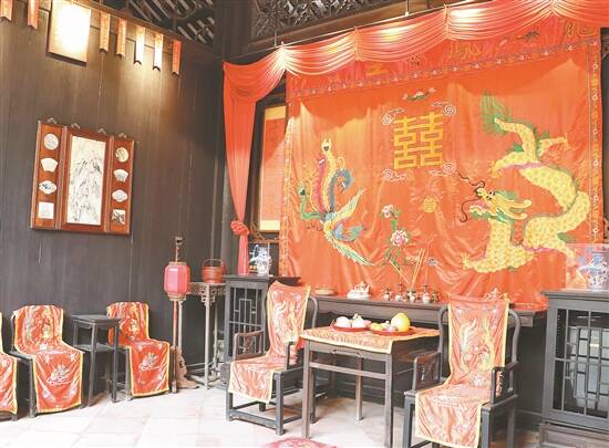 文/图 羊城晚报记者 景瑾瑾 “连理枝喜结大地,比翼鸟欢翔长天。”在佛山岭南天地的烟火气息中,走着走着就会遇到成群的古建筑,其中,有一座有着数百年历史的小院落——嫁娶屋,其间的一砖一瓦、一草一木,都是古往今来无数甜蜜爱情的见证者。 昔日,这里是供人们举办婚礼的特殊“出租屋”,如今,这里不仅是一处静态的文物建筑,更是“最美”结婚登记处、“网红”领证打卡地,也是热门景点。 岭南小院落见证无数甜蜜爱情 “我们在相恋1000天领证了,选择在比普通民政局更有氛围的岭南天地嫁娶屋婚姻登记处。” “读大学的时候,每次经过岭南天地婚姻登记处都会想,如果可以在这里领证就好了……多年的心愿终于实现,领证后,还特意去附近的良缘路打卡。感谢上天让我遇到对的人。” “这里可以说是佛山最有特色的领证地点,从小在岭南画派、粤剧结婚等具有浓郁地方特色的文化艺术熏陶下长大,嫁娶屋这个领证点真的太适合我了。” “领完结婚证,带着我的手捧花去拍照。岭南天地嫁娶屋古色古香,是取景的好去处,很多人选择在这里拍‘领证照’。” “这个登记处真是佛山最好看的了,有好多古色古香的风景可以拍摄,而且登记完还会领到一个心形的木质牌子,新人可以写一些话,挂到门口旁的墙上,特别有意义。” 以上这些“甜言蜜语”,是网友们在“小红书”等社交网站上留下的“与佛山嫁娶屋有关的爱情故事”片段,同时呈现的,还有他们手持结婚证在嫁娶屋拍下的一连串唯美照片。 昔日为办豪华婚礼的“出租屋” 青砖老屋,镬耳山墙,雕梁画栋……走近位于岭南天地文会里36号的嫁娶屋,古朴又喜庆的气息扑面而来,这是一处屋宇高大、造工精巧、装修豪华、整齐美观,旁边有小巷贯通首尾的岭南古建筑小院落。大门口挂着雅致的红灯笼、门框上贴着横批为“百年好合”的对联。 进入院内,首先映入眼帘的是拜堂厅,厅内靠墙悬挂着龙凤图案红锦帐,锦帐前的案头上摆放着香火、瓜果等祈福供奉品,案头两侧则是长辈椅。在院子的一侧,还摆放着一顶传统婚礼要用到的大花轿。除了拜堂厅,院子里还有数间厢房,房间的墙壁上,布置着古代婚嫁的传统礼仪介绍,如三书(聘书、礼书、迎书)、六礼(纳彩、问名、纳吉、纳征、请期、亲迎)等。 根据佛山禅城地情丛书《禅城旧地》记载,嫁娶屋是二十世纪三四十年代佛山出现的特殊出租房屋,也是中国民间婚俗的一个特例。 清代中叶,佛山人口密集,人们在婚嫁时特别注重排场,但普通人家住屋狭小,来贺喜的亲友又多,且一般都要住几天。招待这些亲友住酒店客栈,花费就非常大,于是,为了将婚礼办得风光体面,不少百姓选择租用富有人家的镬耳大屋办喜事,故而,嫁娶屋便应运而生,在嫁娶屋操办婚礼也渐成盛行的习俗。 目前可以看到的文会里嫁娶屋,建于清初,原来是杨氏家族居住的大型宅第建筑群,转卖后转作嫁娶屋出租。明清时期的文会里是佛山古镇中比较宽敞的街道,与专营婚嫁物品租赁的“长生树”老街毗邻,在文会里举办婚礼极为便利,也是嫁娶屋在此街形成的一个原因。 当时,出租嫁娶屋的屋主,多数是破落的大户人家,拥有较多宽敞的厅房楼宇。嫁娶屋出租期限短,3至4天为一个租期(称一个台脚)。家居设施齐备,厨房炉灶用具、餐具、台椅、台围、锦帐一应俱全,备有新房和多间客房、厢房等供租客使用。 1998年4月,文会里嫁娶屋被定为市级文物保护单位;2015年,被评为广东省文物保护单位。 如今是热门的婚嫁打卡地 如今,文会里嫁娶屋长期对公众开放,市民游客可以进入院内游玩参观,体验底蕴深厚的岭南文化及佛山独特的传统婚俗。 为了让传统文化更加贴近现代人的生活,禅城区民政局在嫁娶屋设立了特约结婚登记颁证点,每周一、三、六及1月1日、5月1日、10月1日的特定时段提供预约颁证服务。 近年来,能在嫁娶屋婚姻登记处“领证”,成为佛山人流行的结婚仪式。即便不在此处办理结婚登记,在其他婚姻登记处领证后,很多新人也会于当天赶到嫁娶屋拍摄纪念照片。 “走一遍嫁娶屋,图个百年好合好意头。”2月21日,到嫁娶屋婚姻登记处领证的岑先生表示,“因为喜欢嫁娶屋古色古香的韵味,所以选择在这里领证,很有意义。当然,这里景观也很好看,拍起照片来‘出片’率很高。”为了拍出高质量的照片,岑先生还专门找了跟拍摄影师。为了留下美好的记忆,岑先生的未婚妻特意穿上了白色纱裙,戴着漂亮的头纱,拿着精致的手捧花。 事实上,在佛山,不仅嫁娶屋是新婚情侣喜欢的爱情圣地,祖庙以及快子路(早生贵子)、福禄路(有福有禄)、永安路(平平安安)、良缘路等名称吉祥的路段,也成为新人们热衷的婚嫁打卡地。 其中,快子路原名“筷子路”,自上世纪中叶开始,佛山新婚男女在结婚当日到祖庙门前祈福后,必到筷子路上走一趟,以求快生孩子的愿望,因此街坊们也将“筷子路”叫成“快子路”,婚嫁时走快子路的习俗也沿袭至今;相比而言,距离嫁娶屋不远的良缘路,本不是传统的“婚嫁之路”,但因为路名寓意好,加上道路两旁有浪漫的紫荆花树点缀,以及紧挨着祖庙和岭南天地热闹街区,这条路也成为新晋情侣们欢迎的喜结连理“见证地”。