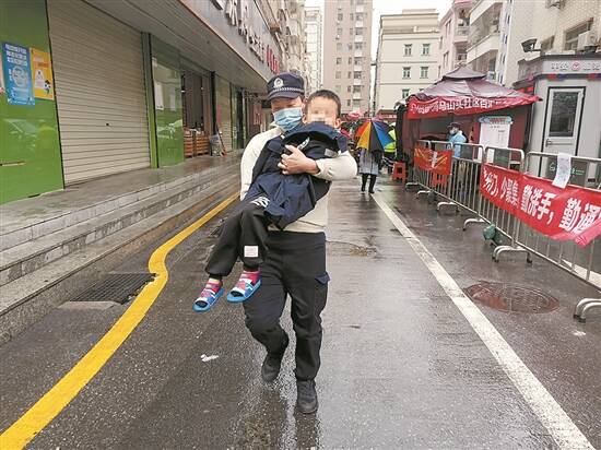 羊城晚报讯 记者郭起,通讯员向佳佳、陈小凤摄影报道:近日,深圳气温骤降,冷空气挟雨来袭,深圳迎来了“入秋以来”最强寒冷阴雨天气,最低温度达7℃。2月20日上午,在光明区马田街道马山头社区一超市附近出现了暖心一幕,寒风里,民警脱下警服抱起一名走失的小男孩,悉心安抚孩子的情绪。 据了解,小男孩的父母在单位上班,小男孩独自出门玩耍不小心迷了路,路过的热心居民发现后拨打了报警电话。马田派出所民警张卫家赶到现场时,见男孩身着一件薄衫,在寒风中冻得瑟瑟发抖,赶紧脱下自己身上的警服将小男孩裹上,并将小男孩紧紧抱在自己的怀中。 “你住在哪里?知道父母的电话号码吗?”一开始,面对民警的询问,小男孩既紧张又害怕,不愿开口说话,四下寻找其家人无果后,考虑到天气较冷,民警便将小男孩先带回派出所,避免孩子着凉。在派出所里,民警找来了孩子爱吃的零食,耐心安抚孩子情绪,同时通过多方渠道查找小男孩的家人。经过安抚,小男孩情绪逐渐缓和,终于愿意开口说话。交谈中,小男孩告诉了民警其家人信息,随后,民警成功联系上了小男孩的父亲张先生。 中午12时许,小男孩的父亲张先生急匆匆赶到了派出所,核实身份信息后,民警将小男孩交还到张先生手中,并叮嘱其今后千万不能将孩子独自留在家中,避免危险的事情发生。“幸好你们找到了孩子并将他带回了所里,不然这么冷的天,不敢想会有什么后果!”看到民警对孩子的细心照顾,张先生感动不已,再三向民警道谢。 警方提醒,儿童走失事件时有发生,家长在加强对孩子的监护意识的同时,也要加强对孩童的安全教育,教会孩子记住家里电话、亲人的手机号码、家庭住址等信息,一旦发现孩子走失,第一时间拨打110报警。