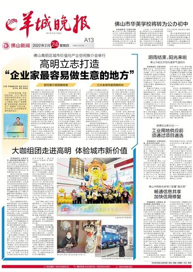 羊城晚报讯 记者梁正杰、通讯员明宣摄影报道:湾区高明,释放城市新价值!23日下午的第三分会场活动中,高明区区长姜岳新带领全域高质量发展观察团,通过走访三家高明有代表性的企业,发现高明城市新