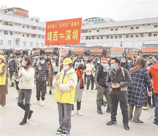 “龙岗欢迎您”“热烈欢迎靖西老朋友回来,新朋友到来”!乍暖还寒的早春,2月26日凌晨1时,来自广西靖西市的数十名劳动力在龙岗汽车总站一下车,从醒目的欢迎标语,到工作人员送上的热腾腾的餐饮以及温暖的话语中感受到了温馨的气氛。 政府安排专车直达 廖先生是第一次从广西到龙岗区务工。他本想早早外出找工作,受疫情影响,一直拖到现在。“政府一直在推荐岗位信息,不仅让我找到了工作,还安排专车直达,真的感觉非常幸运、非常贴心”。 “终于回到龙岗了”!带着上学的儿子返回龙岗的黄女士感慨,“还没下车就看到欢迎标语,一下子就觉得眼眶湿润了”。她说,虽然家乡现在也有很多用工岗位,但因为已经在龙岗区工作十多年了,还是非常留念龙岗的企业文化和人文环境。看到黄女士和孩子行李较多,区人力资源服务中心工作人员主动开车将其送回公司。黄女士添加了工作人员微信,说后续还有不少老乡准备外出就业,届时请人力资源局推荐工作岗位。 据介绍,黄女士所在的海能达通信股份有限公司现有几十名靖西籍务工人员。公司负责人说,公司春节后订单增加,老乡们回来得正是时候。安顿好住宿后,公司马上安排核酸检测,检测结果正常即可上岗。 防控复工两手抓 广西靖西市、那坡县是龙岗区对口劳务协作地区。自开展东西部劳务协作以来,两地的大批劳动力转移至龙岗就业。今年以来,为促进靖西劳动力在解除疫情管控后尽快返岗和就业,龙岗区人力资源局和靖西市人社局密切对接,一手抓疫情防控,一手抓复工复产,继在2月24日成功举办龙岗-靖西/那坡东西部劳务协作视频招聘会后,又与当地联手,组织了返岗复工“点对点”免费乘车服务,帮助农村劳动力开启新的返岗就业之路。该返岗专车将一直开行到3月10日。 据了解,近年来,龙岗区与靖西、那坡联手深化劳务协作,促进脱贫劳动力转移就业。今年早在春节前,龙岗区人力资源局就提前与两地人社部门沟通对接,请当地摸清劳动力外出务工需求。与此同时,该局不间断推送区内缺工企业岗位信息,近期又陆续推出了“直播带岗”、视频招聘会等服务,让务工人员不出家门便可物色心仪工作。视频招聘会现场,那坡便有多人和龙岗区企业达成意向,近日这批新员工即将“点对点”到达龙岗。 2021年帮助靖西、那坡2210名农村劳动力(其中脱贫劳动力917人)实现在粤稳定就业,几年来开展了一系列人文关怀活动,并搭建两地合作培训平台,深受群众好评。2021年,龙岗区人力资源局被广东省委、省政府授予“广东省脱贫攻坚先进集体”称号。 (李薇 叶佳俊)