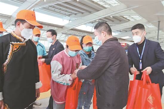 羊城晚报讯 记者钱瑜报道:2月27日,承载着数百名云南怒江务工人员未来美好生活希冀的D3812/09次专列缓缓启动,再度吹响了怒江返珠返岗就业“集结号”。369名(其中新增劳动力达50%以上)怒江务工人员背好行囊,带着家人的祝福,搭乘着这趟从昆明驶向珠海的高铁专列,踏上了返岗就业之路。据了解,这是珠海、怒江两地人社部门今年开春以来开设的第二趟怒江务工人员返珠返岗专列。 2月27日晚,珠海市人力资源和社会保障局局长潘伟明、副局长全冠,珠光集团党委副书记陈根洪等人在珠海站迎接全体怒江务工人员,向全体怒江务工人员致以亲切的问候、发放了慰问礼包,希望他们鼓足干劲努力工作、扎根珠海,用拼搏换来更好的生活,迈向更高水平的小康。 春节前夕,两地人社部门迅速紧密开展对接,共同策划,专门制定务工人员安全有序返珠返岗方案,主动协调铁路部门开设返岗高铁专列,积极动员怒江州各县(市)、乡镇、村居务工群众,构建“出家门、上车门、下车门、进厂门”一站式服务模式,“点对点”输送怒江务工人员至珠海企业返岗就业,实现防疫、吃、住、行无缝衔接。 据了解,自2月3日起,珠海全市人社系统已协调专机2架次、专列4列次、专车57辆次,从怒江、遵义、湛江、茂名、阳江、昆明、曲靖等地接回返岗来珠务工人员及顶岗实习学生3000余人,人员遍及格力、纳思达等多家重点企业。