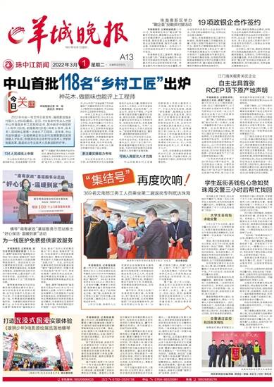 1957年10月1日创刊 珠中江新闻 2022年3月1日 星期二 壬寅年正月廿九 湾区新闻部主编/责编 黄铁安 / 美编 关彩玉 / 校对 黎松青 手机报料:18520