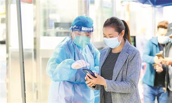 志愿者引导市民打开核酸检测二维码 |