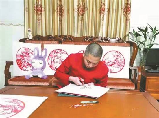 钟善科正在创作剪纸作品 |