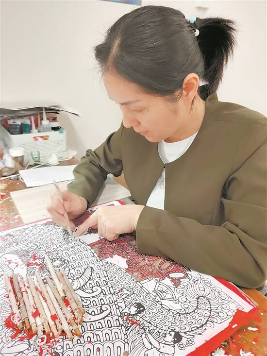 非遗传承人茹新梅在制作铜凿剪纸 |