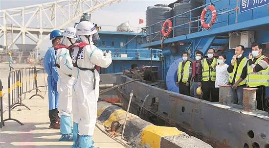 谢虹在隔离岗位查验船舶 |