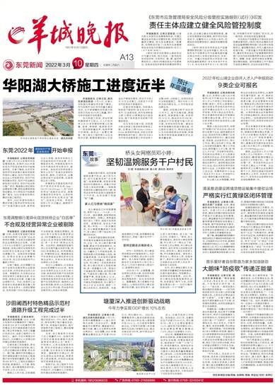 1957年10月1日创刊 2022年3月10日 星期四 壬寅年二月初八 湾区新闻部主编/责编 张德钢/ 美编 李金宝/ 校对 余燕红 广告热线:07