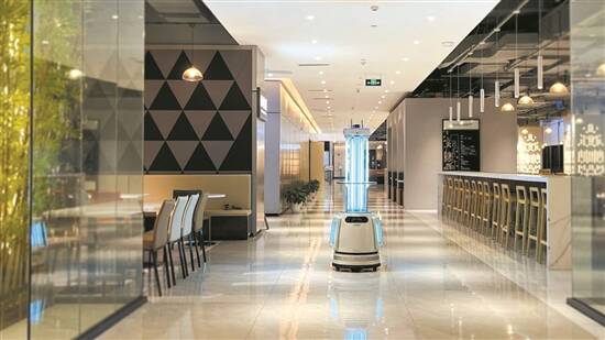 文/图 羊城晚报记者 沈婷婷 “3,2,1,消杀启动……”一道紫色“身影”,正在深圳首个5G主题产业园内忙碌地工作着。经与工作人员核实,原来是一台名为“ADIBOT净巡士”的紫外线消毒机器人在深圳新一代产业园执行园区饭堂的环境消毒任务,用其独树一帜的“紫外线消杀技能”承担起了园区饭堂消杀的重任,全力保障园区人员的用餐环境安全。 采用厘米级高精度导航 自深圳疫情暴发以来,深圳市福田区在主动核酸检测、密接人员筛检工作中发现新病例,随即打响了新一轮防疫抗疫阻击战。为积极响应号召,坚决落实抗疫防疫工作,位于福田CBD北部核心的深圳新一代产业园,已先后部署“10分钟可自行搭建的便捷式病房”“无感非接触防疫交互系统”等“防疫新科技”。这一次,他们引入了来自优必选科技的紫外线消毒机器人ADIBOT净巡士,在园区大堂、饭堂、电梯口等高危场所执行消杀任务。 深圳新一代产业园是深圳首个以5G产业为主题的高端创新产业园区、深港合作区“1+N”模式首个卫星园区。园区以5G为主题,以智能科技、数字科技产业为主导产业,总建筑面积约40万㎡。“疫情当前,我们的员工饭堂是人群聚集的特殊场景。但是因为涉及到食品和生命健康安全,还有孕妇、易过敏人士等特殊人群,在使用消毒剂的时候需要非常小心。优必选的智能机器人可以通过紫外线对就餐区等公共区域进行消毒,环保安全的方式让就餐人员、商家和物业都感到安心。”深圳福田新一代智慧运营有限公司总经理谢利民介绍道。 紫外线消毒的原理是通过其最强杀菌波段253.7nm,破坏病原体的基因结构并使其无法繁殖,从而失去传染性。可以应用于空气、水和物体表面的消毒。据优必选项目负责人介绍:“ADIBOT净巡士机器人采用自研的业内领先厘米级高精度导航,可以按照设置路线进行自主移动消毒。” 机器人每晚自主全面消毒 ADIBOT净巡士机器人的设置应用简单便捷,园区运营人员表示学了一次就会操作了,“我们的园区饭堂使用面积近7000平方米,能同时容纳1200人就餐,是目前福田产业园区最大配套食堂。之前这么大的区域,需要工作人员起早贪黑在非就餐时间完成消毒工作。现在紫外线消毒机器人每天晚上自主进行全面消毒工作,大大减轻了我们的工作量。” 当前,深圳疫情仍处于不稳定期,深圳市正在全面开展流调溯源、隔离管控、核酸检测、医疗救治等处置工作,防疫压力不容小觑。深圳新一代产业园以“AI手段”链接“5G桥梁”,全方位发挥5G示范园区带头作用,用高科技防疫手段守好深圳梅林的“最后一道防线”。