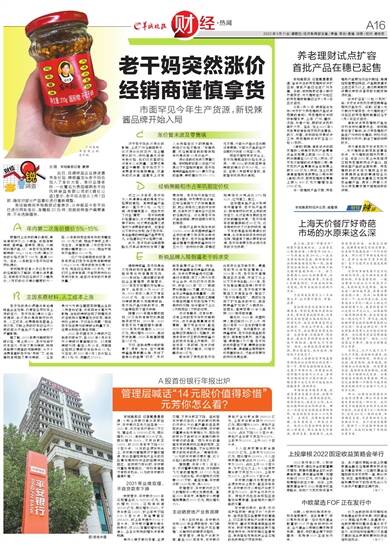 文/图 羊城晚报记者 黄婷 近日,在调味品企业接连宣布涨价后,辣椒酱龙头老干妈也加入了涨价大军。有行业媒体称,一份署名为贵阳南明老干妈风味食品有限公司的《调价公函》显示,老