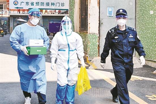 羊城晚报讯 记者秦小辉、通讯员赖鸿程摄影报道:“三人小组”由基层网格员、社区民警、社区卫生服务机构医务人员组成。精巧的人员配置可以保证快速到达现场、准确开展取样、果断切断疫情传播、稳定做好防控工作。疫情防控期间,东莞市凤岗镇各村(社区)、工业园区疫情防控“三人小组”日夜奋战在抗疫最前线,他们走街串巷、入户走访,勇当疫情防控的中流砥柱,为凤岗镇构筑起坚固的疫情防控屏障。 穿好防护服、登上巡逻车……14日上午,雁田村疫情防控“三人小组”根据当天重点人员信息清单,来到某小区一户正在居家观察的居民家中,做好个人信息登记,询问身体健康状况。随后,医务人员严格按照规范要求,做好居家观察人员核酸采样,采样完后,工作人员在其大门上方安装“智能门禁”,借助科技手段,实现智能化防控。 “居家观察人员开门时,我们会同步收到短信和电话,然后会打电话核实。”雁田村三人小组成员何旭华告诉记者,随后,“三人小组”就会上门去核实情况,根据实际去做相应的措施,达到可防可控的效果。 待工作完成后,“三人小组”又马不停蹄地赶往下一户居家观察人员家中……在疫情防控形势严峻复杂的当前,面对工作中一些群众的不理解甚至是质疑的时候,他们依然任劳任怨,用实际的行动和耐心的服务,诠释身上沉甸甸的责任。 “辛苦付出都是值得的,只要大家都平平安安。”何旭华表示,接下来,他们会更加尽职尽责地完成这份工作,希望用自己的一点点力量,为大家的平安作出一点贡献。记者了解到,目前凤岗镇共有“三人小组”111组,人数达三百多人。疫情防控期间,他们在重点人员落地核查、落实健康分类管理、配合处置辖区疫情、及时报告防控风险等方面发挥了重要作用,成为“快、准、狠、稳”的疫情防控“尖兵”。