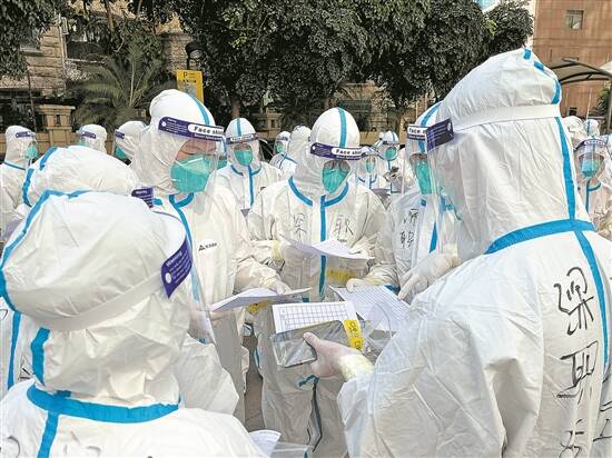 文/图 羊城晚报记者 沈婷婷 “哪里有需要,我们就去哪里”“我们与深圳同呼吸、共命运,深圳所需,就是我们所向所往”“小我融入大我,青春献给祖国”……3月12日,在深圳这座城市最需要抗疫人手的关键时刻,深圳职业技术学院(以下简称“深职院”)548名青年师生紧急驰援街道社区一线抗疫,用实际行动守护城市安全。 吹响“青年战疫突击队”集结号 近期,深圳在多个重点区域、重点人群的核酸筛查中发现确诊病例,全市11个区同时发布疫情防控指挥部通告,全面加强疫情防控措施。本轮疫情波及面比较广,给防控工作带来较大压力,多个街道、社区人手不足急需志愿者。 疫情面前,没有旁观者,更没有局外人。3月11日晚,深圳职业技术学院再次吹响“青年战疫突击队”集结号,很快就收到了531名青年师生的请战报名。按照团市委和学校党委的安排部署,3月12日上午7时,由18名师生组成的第二批“青年战疫突击队”已经在管控社区——桃源街道欧陆经典花园整装完毕。他们身着严密的防护服,逐户通知居民做好入户核酸检测准备。社区近500户居民,在短短2小时内全部通知到位。 与此同时,学校第三批突击队也于8时许抵达桃源街道15个全员核酸检测点位,协助开展核酸检测工作。这支突击队由30名师生组成,他们当中有很多同学是天还没亮就从家里出发,准时到达各自岗位。此外,还有483名学生就地开展志愿服务,在就近社区一线支援抗疫。 突击队迅速成立临时党支部 虽然“青年战疫突击队”队员平均年龄仅20出头,但他们却是一支召之即来、连续作战、能打硬仗的队伍。第一批17名突击队员不到半小时就组建成立,第二批18名突击队员在短短1小时内即招募完毕,第三批30名突击队员在11日20时发出通知后,2小时内组建到位。他们在报名时,没有问过一句待遇,没有提过一句困难,只关心何时出征。到达指定岗位后,突击队迅速成立了临时党支部,党员发挥先锋模范带头作用,带领其他团员青年勇敢冲到战疫第一线。 就在几天前,第一批突击队队员们刚完成一天的防控任务,就在开始吃晚饭的时候,突然收到通知要求到南山村支援全员核酸检测。全体队员立即放下盒饭,跑步行进3公里,不到10分钟就抵达岗位投入新一轮工作,一直忙到凌晨将近2时,第二天上午6时又继续投入到新一天的工作中。 据不完全统计,深职院首批突击队员6天来深入管控区累计开展战疫志愿服务748.5小时,服务社区居民31045人次,上门协助采集核酸4799人次。