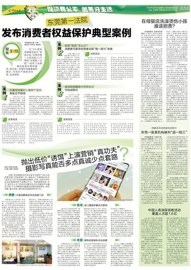 羊城晚报记者 王雷 通讯员 刘伟乐 胡敏怡 在“315国际消费者权益日”来临之际,东莞市第一人民法院(以下简称“东莞第一法院”)发布了消费者权益保护典型案例,旨在进一步提升消费者维权意识