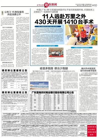 11人远赴万里之外 430天开展1410台手术