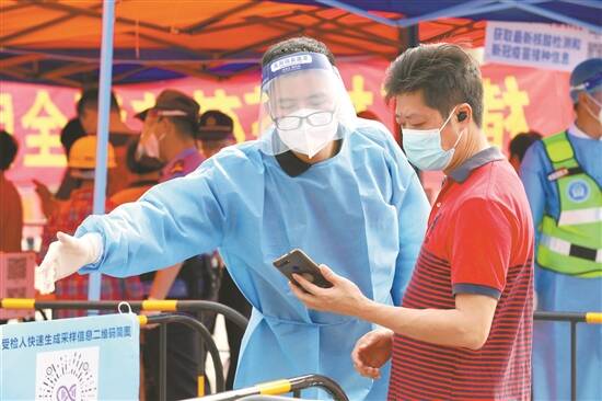 羊城晚报讯 记者文聪、通讯员李绰芝摄影报道:3月16日,东莞市茶山镇开展新一轮大规模核酸检测工作。面对严峻的疫情防控形势,茶山镇广大党员、机关干部、医务人员、公安民警和志愿者闻令而动、冲锋在前,再一次见证“茶山速度”和“茶山温度”。 “请提前打开粤康码,保持一米以上的距离,今天有八条通道,很快的。”当天上午,伴随着扩音器不断传出的提醒声,茶山镇茶花广场核酸采样点的采样工作紧张有序地进行着。各个位置的工作人员有的用大喇叭维持现场秩序,有的协助指导市民扫码登记,有的耐心引导市民按区域排队,所有环节均衔接流畅。一大早就有不少市民积极主动前往就近的采样点进行核酸采样,并表示做完核酸就会马上回家继续“慢”生活。 据了解,茶山镇18个村(社区)为提高采样效率,在总结前几次经验的基础上,各核酸采样点结合实际,对各项流程进行再优化。通过完善分流通道、添加遮阳帐篷、现场打印葵花码等措施,为市民群众提供更加细致的服务。 在京山村核酸采样点,记者见到70岁以上的老人家拿着一张小卡片,就能够轻松参加核酸采样。这是村委会特地打印的过胶“葵花码”,方便老人家多次使用。邹婆婆还翻出自己口袋里的手机给记者看,她说:“其实我有手机,不过我不太会操作,昨天村小组的组长上门派了专门给老人家做核酸的小卡片给我,很方便。” 京山村党委书记、村委会主任叶惠权告诉记者:“村里已经组织开展了多次大规模核酸检测,我们都有充足的经验。现在每一次都是在细节处调整,尽可能把市民群众的需求想得更细一些,做得更精致一些。”