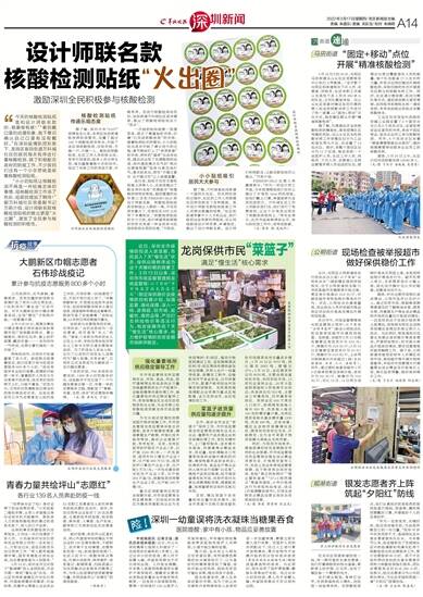 “今天的核酸检测贴纸是和设计师联名款的,很潮很有感!”“看到戴口罩的动漫形象,我下意识确认自己口罩有没有戴好。”在深圳疫情防控形势下,龙岗区坂田街道万科城社区的居民每天有序进行着核酸检测,除