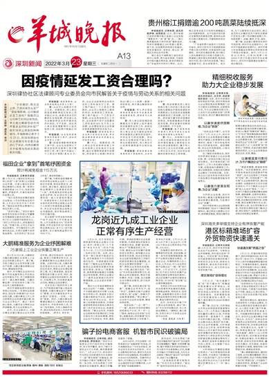 3月21日,位于龙岗区平湖街道的制造企业维达力实业(深圳)有限公司(以下简称“维达力公司”)的生产线马力十足,工人们正在赶制新一批的交货订单。此前,该公司有一笔订单若不能按时交货,将可能