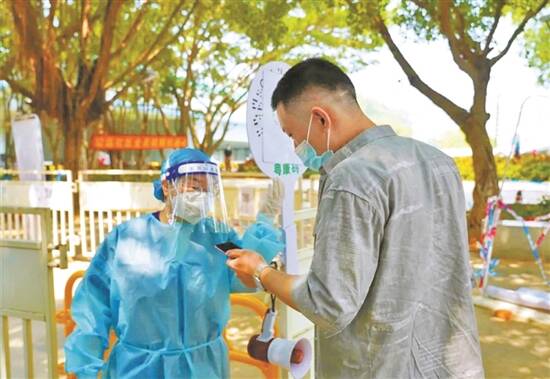 黄海端在核酸采样点为市民服务 |