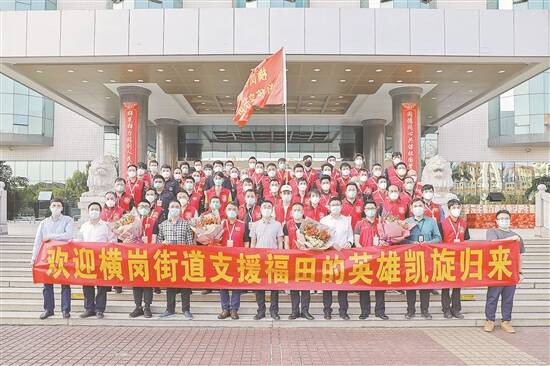 4月7日,龙岗区横岗街道抗疫支援队凯旋。街道主要负责人为支援队赠送鲜花,欢迎支援队归来。 据了解,由55名党员干部职工组成的横岗街道抗疫支援队于3月18日火速赶赴福田区沙头街道支援抗疫攻坚战,历时18天。横岗街道抗疫支援队受领的任务为上沙社区塘宴村1个网格40栋楼的封控工作,合计共1511户3025人次的封控管理任务。横岗支援队主要完成了协助转运约1400人进行酒店隔离和异地安置;全天候值守楼栋,上门清理垃圾约8730户次;配送生活物资8000余份,快递约2100余件;上门检测核酸16250人次等,圆满完成了各项抗疫支援任务,深获当地政府与民众好评。所有队员均荣获了“福田抗疫先锋”纪念章。 (李薇 刘文玲)