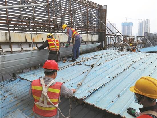 羊城晚报讯 记者景瑾瑾、通讯员宋会林摄影报道:4月20日上午,记者从禅城区城市管理和综合执法局获悉,禅城城管部门联合石湾镇综合行政执法办、区消防部门、番村村委等,开展“一门式”联合执法,对石湾一个市场的天面违规搭建实施拆除,拆除面积约10000平方米。 据了解,该市场位于魁奇西路北侧,总建筑面积近20万平方米。4月18日,城管执法人员联合消防人员在排查该市场时,发现场内各相邻的建筑天面搭建了大面积的彩钢棚,此举不但涉嫌违法搭建,还占用消防间距,存在极大安全隐患。 检查组随即向市场负责人调查了解情况。经查,市场管理方为增加市场使用面积,在未经相关部门批准的情况下,私自搭设连廊。后经执法人员的劝导教育,市场方意识到问题的严重性,表示会配合执法部门整改。 4月20日上午,禅城城管部门联合石湾镇综合行政执法办、区消防部门、番村村委等30余人,开展“一门式”联合执法行动,对该市场天面违规搭建实施拆除。因搭建面积较大,加上拆除现场条件复杂,预计需要6天时间才能拆除完毕,拆除面积将超1万平方米。 据介绍,4月12日至26日期间,禅城城管部门在全区开展各类批发市场违法建设排查整治,尤其对建材、家具、家纺、蔬果、汽车(二手车)等专业批发市场进行重点排查。检查这些市场是否具有土地、规划许可;是否存在违法搭建阁楼、夹层作为生活、住宿场所问题;是否存在用铁皮、彩钢板在顶层、连廊处违规加建等问题。一经发现存在上述问题,城管执法部门将按照“应拆尽拆、应改尽改、精准高效”的原则进行整改、清拆。 禅城城管部门提醒,广大市民切勿以身试法,严格依法依规建设。下一步,城管部门将严格按照有关工作要求,加大巡查监管力度,严厉把控,严厉打击新增违建。