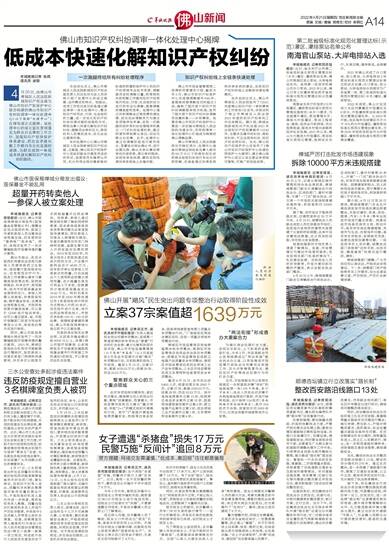 羊城晚报记者 张闻 通讯员 廖旋 4月20日,由佛山市禅城区人民法院新城知识产权法庭与佛山市知识产权保护中心联合构建的佛山市知识产权纠纷调审一体化处理中心(以下简称“处理中心”)在绿岛湖