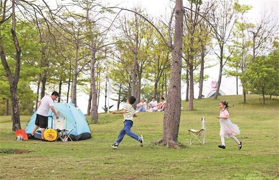 市民在龙湾湿地公园感受春天的翠绿嫣红 |