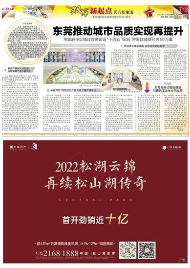文/图 陈泽煌 近日,东莞市政府审议通过了《东莞市住房建设“十四五”规划》(以下简称《规划》)。其中提到,“十四五”期间东莞将重点围绕稳市场、强安居、优环境等方面谋划全市住房发展工