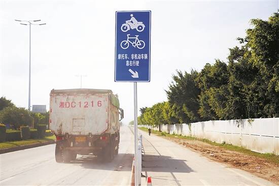 珠海交警在机场北路设置隔离护栏和标志牌,实施大车和摩托车的空间分离 |
