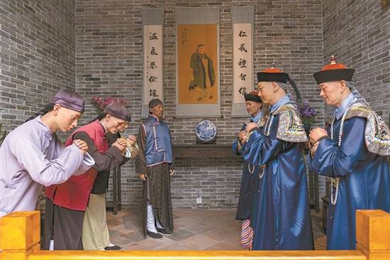 大堂里官员与宾客相互作揖,作送别“宾兴”礼 |