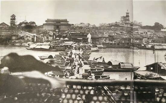 清末水东街周边店铺鳞次栉比,船只往来云集,这里是重要商品集散地,翻拍自《惠州近代历史图录》 李海婵 摄 |