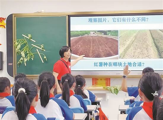 谢慰意给学生上劳动课《扦插红薯苗》 邓窕玲 摄 |