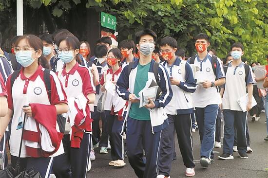 文/图 郑达 钱瑜 杨雪薇 曾令奇 又是一年高考季。高考不仅是学子的考试,也是社会的总动员。 2022年,珠海全市安排正常考点10个,专设医院考点1个、备用考点2个、备用隔离考点1个、隔离酒店考点4个,做到所有考生“应考尽考”。此外,按照省招生委员会要求,今年高考防作弊措施再升级,每个考场的监考员由两名增加到三名。 珠海今年共有12004名考生参加高考,尽管脸上戴着口罩,但依然挡不住他们的自信与朝气。 红色成为考场“标配” 昨日凌晨,珠海主城区下起暴雨,好在考前雨已停止,不少家长松了一口气。目送孩子走进考场的宋女士称,自己一大早就起床了,担心堵在路上,所以就提前出门了。不少考生在门口与家人拥抱分别,从容走向考场。 早上7时许,珠海市第一中学门口已经成了红色的海洋,红色衣服、红色口罩几乎成了家长们的“标配”。市民吴女士和她的朋友们特意穿上红旗袍,手持向日葵,“希望孩子们能一举夺魁”。居民刘先生则特意穿上了红色上衣,胸口“金榜题名”四个大字十分醒目。他说,孩子就在珠海二中就读,成绩优秀,最近状态不错,希望孩子能考取理想的大学。 在珠海市第一中学平沙校区,学校老师、职工及部分低年级学生组成送考团为该校809名高考学子击鼓壮行,加油助威。其中,学生们现场舞起红色和紫色两条舞龙,声势浩大。 除了家长,珠海市第一中学考点还搭起了一顶顶红色帐篷,首尾连接,从大门外连至考场所在教学楼前。不止是遮风挡雨,这些红色帐篷所连起的长廊有一个更响亮的名字——“状元廊”。 社会各界助力考生 上午7时38分,第一辆载满考生的大巴抵达珠海市第一中学东门,前来送考的珠海一中附属实验学校的冯老师向记者表示:“非常感谢执勤的交警们,让我们能够直达考点,省下了许多时间。”据冯老师介绍,学生自发为交警们准备了问候的牌子以表达感谢。同时在出发前师生也在大巴上贴上了表达感谢与问候的贴纸。 从第一辆大巴抵达考点,到大部分考生基本入场完毕,前后不过七八分钟时间。据冯老师介绍,为了能够快速进入考点,提前一天就收集好了学生们的48小时核酸阴性证明和行程卡信息并形成电子版打包给考点的工作人员进行逐一核对,在正式入场考试时,只需要出示“两证”,省下了大量的时间。 每年高考,总有一些“大头虾”的学生。7日上午,在金湾区的珠海市实验中学,有两名考生遗失了身份证。其中一名考生在酒店遗失了身份证,紧急联系了交警救助。交警送考生到考点外,公安高考安保服务站立即开具临时身份证明;另一名考生则在学校内遗失身份证,他匆忙到考点外高考安保服务站开具临时身份证明。