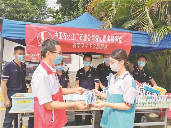 2022年全国普通高考于6月7日至9日举行,江门约3万名考生奔赴考场。高考期间,为了节省考生的宝贵时间,减少接送考生和护航车辆的加油时间,江门中石化将位于考场附近、主干道周边的加油站设置“党员服务点”, 为高考提供一系列爱心助力服务,同时还开辟高考“绿色加油通道”,专机专人专道为高考接送和护航车辆提供优先加油服务。 在新会会城加油站入口,党员志愿者们对入站车辆进行指引分流,绿色加油通道为高考车辆优先加油,为高考学子加油提速。党员志愿者还为等待考生的家长和考试结束出来的考生送上矿泉水,防暑降温。志愿者们一声声“加油”给高考学子送上祝福,也收获了考生和家长们可爱的笑容。 此外,由于目前江门高温多雨,各“党员服务点”还为考生及送考家长提供雨伞、清凉油、肠胃药、解暑药、止血贴等免费物资,应届考生凭准考证可免费领取口罩,为缓解考生们的紧张情绪,还专门设置了活泼可爱的加油打气KT板,希望帮助考生们都能以轻松的心情上战场,筑梦前行,金榜题名。 文/图 李梅结