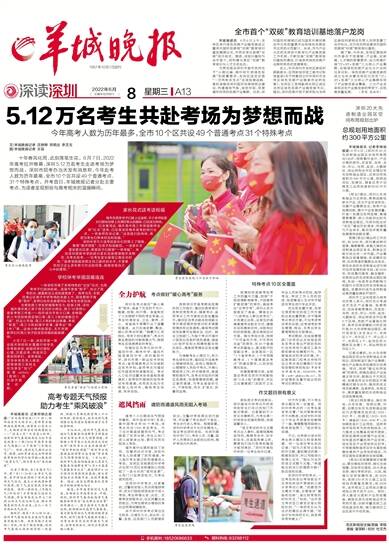 文/羊城晚报记者 沈婷婷 郑明达 李艺戈 图/羊城晚报记者 王磊 十年春风化雨,此刻落笔生花。6月7日,2022年高考拉开帷幕,深圳5.12万名考生走进考场为梦想而战