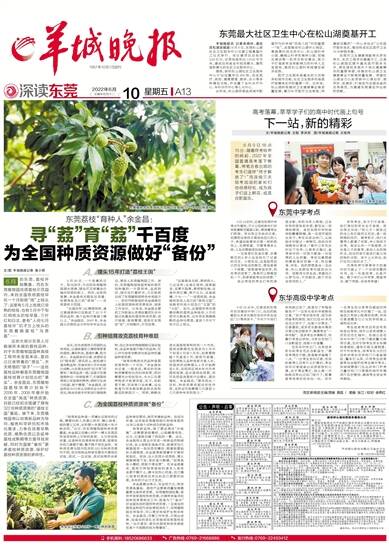 文/图 羊城晚报记者 秦小辉 6月的东莞,荔枝开始飘香。而在东莞植物园优质荔枝示范园内,来自全国各地荔枝早在一个月前就“闹”上枝头了:这里有5月上旬就已早熟的桂母,也有5月中下旬红
