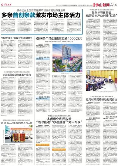 羊城晚报讯 记者欧阳志强报道:6月8日,佛山市人大常委会在官方网站发布公告并对外公布《佛山市市场主体服务条例》(以下简称《条例》)全文,全国首部服务市场主体的地方性法规正式出炉,该《条例》将从今年